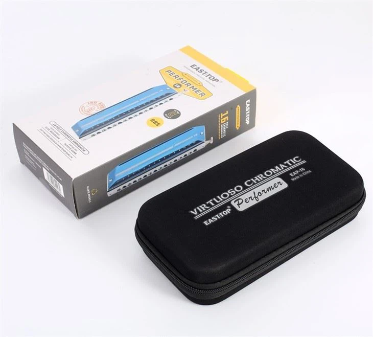 • هارمونیکا کروماتیک حرفهای Easttop EAP-16 با ۱۶ سوراخ و ۶۴ تُن در کوک C، مناسب برای جاز، بلوز، کلاسیک، پاپ و فولک