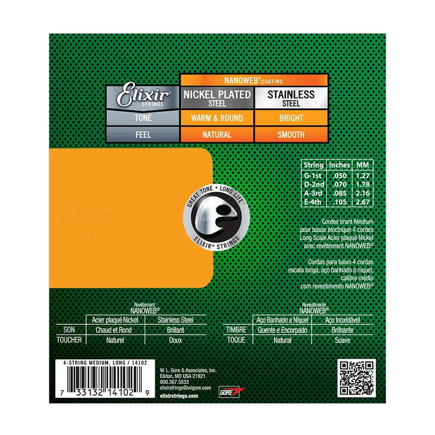 ست Elixir Nickel-Plated Steel 4-String Bass – Medium 0.050–0.105 Long Scale با روکش NANOWEB یکی از منطقیترین و حرفهایترین گزینهها برای شما است.